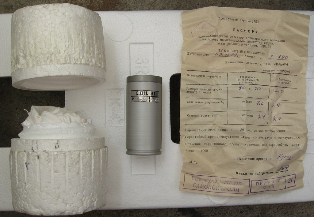 Ещё есть сцинтиллятор NaI(Tl) D=30mm L=70mm, новый (1989г), состояние идеальное, в зав. упаковке с паспортом, 170$