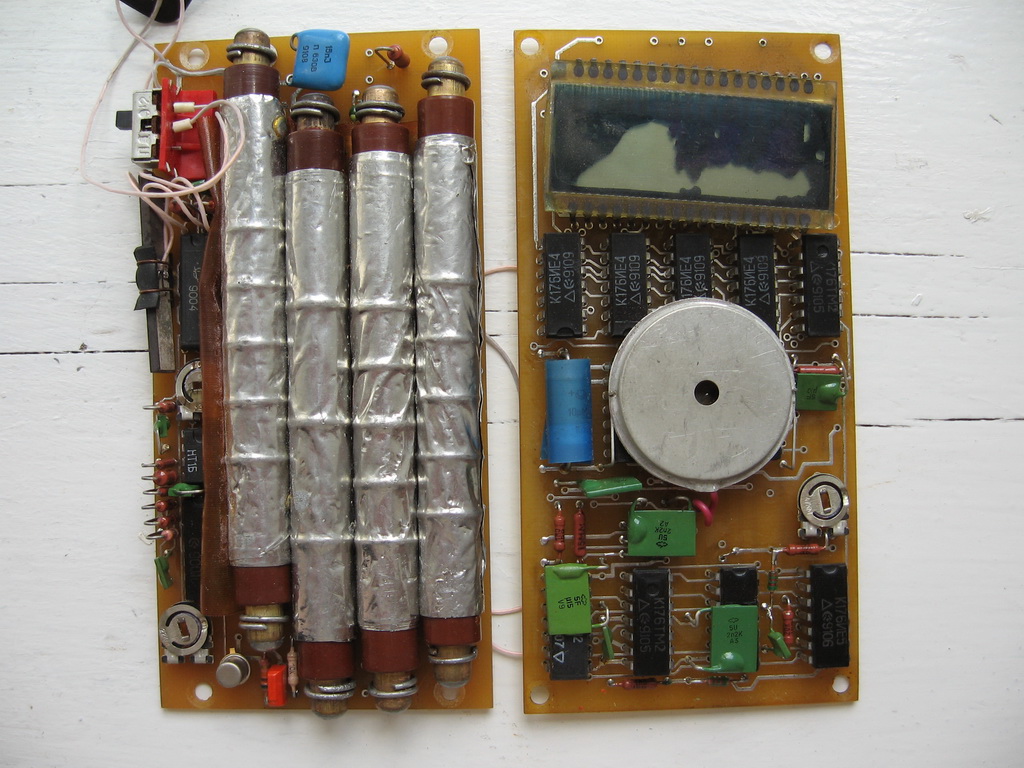 Что-то он мне напоминает, 4 счетчика и предел в 10 mR/h. "Сосна"? Или что там ещё похожее?
