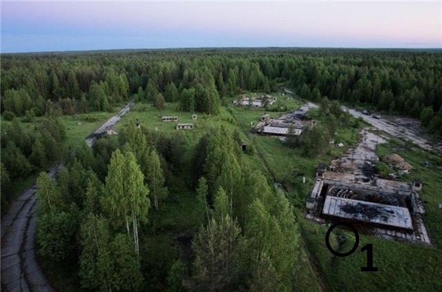 1. Наиболее сохранившаяся БСП комплекса 8П764 в Плесецке. Слева КП (сверху над ним видны вентиляционные короба), справа 3 ШПУ в ряд с частично открытыми крышами ЗУ. 1 - это один из аварийных выходов из потерны. А ещё представте котлованчик, охватывающий сразу три оголовка ШПУ. Кстати, между оголовками ШПУ располагалось подземные хранилищя окислителя и гоючего.