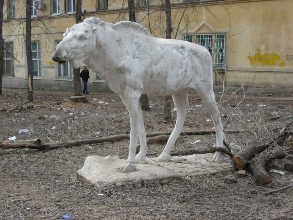 Этот лось находится в перечне малых архитектурных форм города Самара,как и парк требует восстановления и реконструкции.Такой печальный лось...