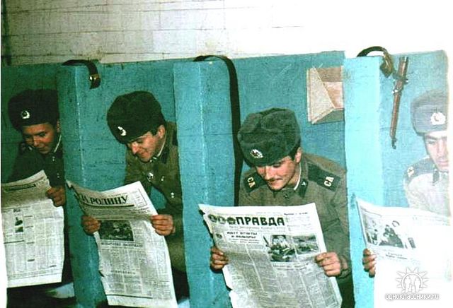 В тЫрнете полно рассказов на тему, как солдаты подсматривают через отверстие в перегородке за моющимися дамами... Честно говоря, даже не знаю - могло такое быть здесь или в каком-то другом городке ЗРП, или это байки. Если у кого-то был такой опыт в армии - не стесняйтесь, поделитесь.