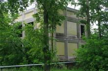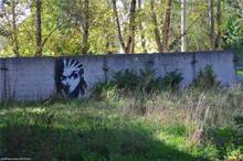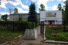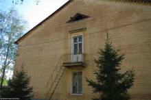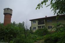 ■ Старая водонапорная башня с надписью, выложенной из белого силикатного кирпича, «50 лет ВЛКСМ», словно памятник ушедшим в историю комсомольцам. Закончив с «красными крышами», я пошёл по дороге в сторону улицы, которую составляли дома, построенные в начале 50—х, ко времени принятия на вооружение «Беркута». По дороге «полюбовался» на памятник прошедшей эпохе — на недостроенное 2—х этажное панельное здание детского садика.