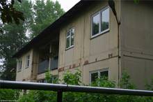 ■ Как видно по фотографиям, эти два двухэтажных каркасно—панельных дома, построенных явно по малосерийному типовому проекту, разработанному, скорее всего, в одном из проектных институтов Министерства обороны, находятся в хорошем состоянии. Я для себя ограничился только констатацией этого факта, а гадать о статусе жильцов, проживающих в них не стал. Гадание и есть гадание, чего на него время тратить. А спросить было не у кого, так как на часах было всего 08:50, когда я сделал первый снимок. Для субботы такое время — это рано.