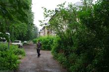 ■ Прошёл недостроенный детский садик, правда, говорят, что это строилась школа, а не садик, потом первый угловой дом, и почти вышел к перекрёстку.