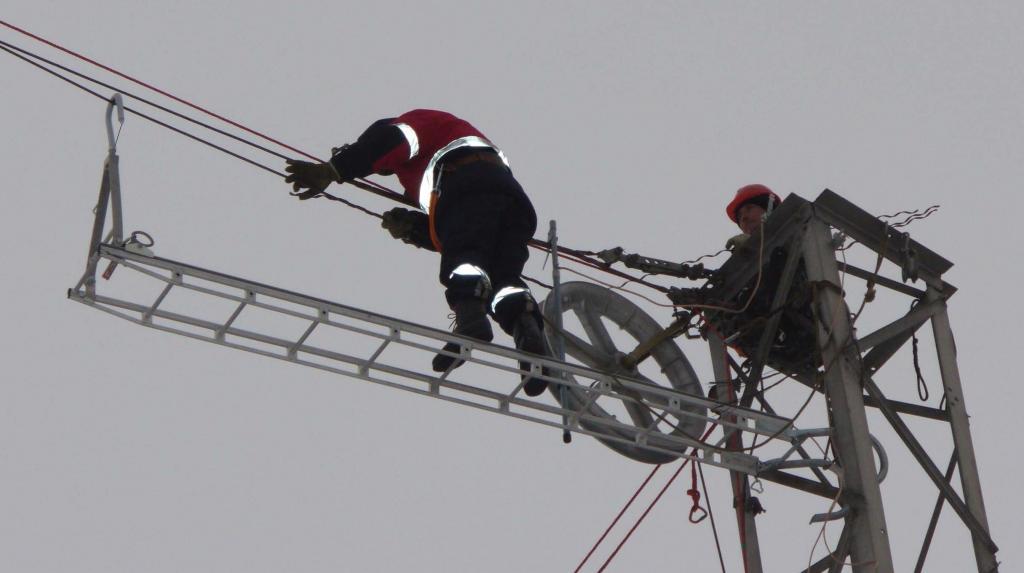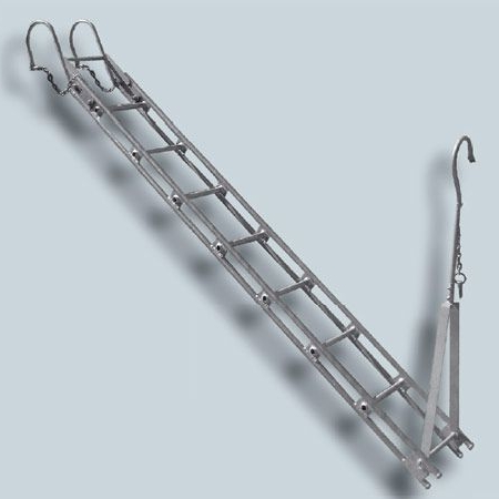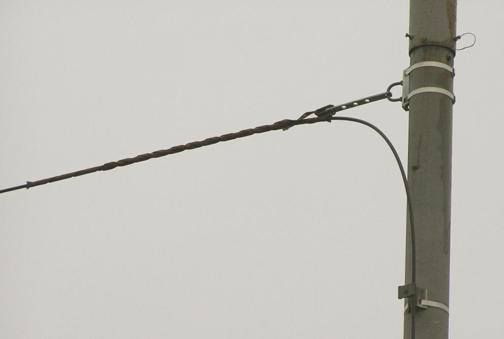 Крюк на кабель, рога на горизонтальную балку опоры. Посередине встаем и ковыряемся с изоляторами etc?