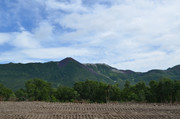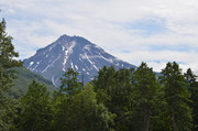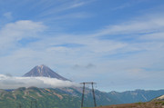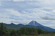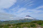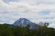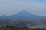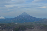 Вилючинский вулкан. За ним виден Тихий океан, а левее в предвечерней дымке можно разглядеть домашние вулканы -
