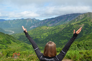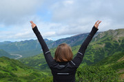 Навстречу спускаются группы, и каждая следующая сообщает, что на вершине разыгрался такой жуткий ветер, что стоять невозможно. Хотя видимость - абсолютно идеальная. Потому как, по рассказам моих камчатцев, часто бывает, что и ураганный ветер, и дождь со снегом обрушиваются на путника, решившего покорить вулкан, абсолютно неожиданно. Так что нам еще повезло. И ветер, хоть и очень сильный, но не холодный.
