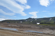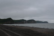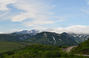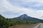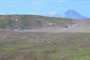 Базовый лагерь и дорога к нему, по которой мы приехали. Вдали - Вилючинский вулкан. (фотки - тыцк!)