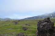 Окружающие пейзажи становятся всё более фантастическими. Застывшая лава, большие и маленькие камни, причудливые нагромождения - результат извержений. Можно себе представить, как из недр земли через жерло в небо вылетали раскалённые глыбы и катились вниз по склону на свои нынешние места.