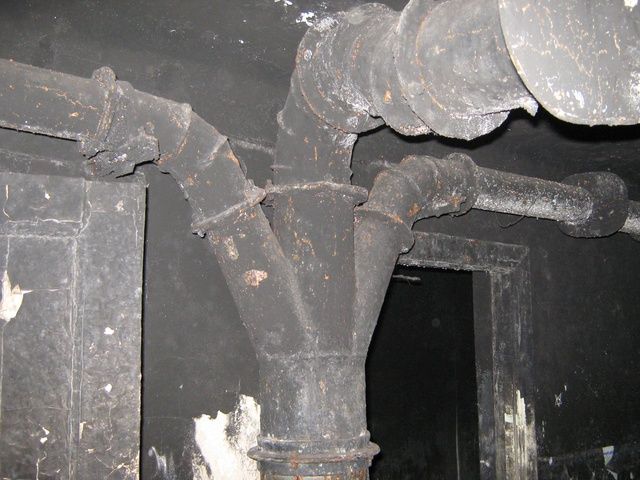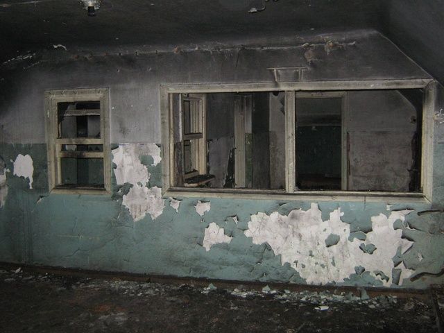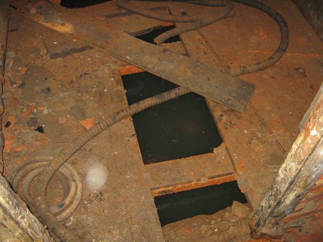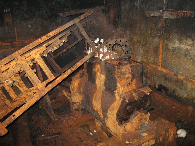 Второй и третий этаж - чередование больших и маленьких комнат (даже обои есть на стенах), котельная есть и пару дизель-генераторов. Есть ещё комната, с затопленным полом (глубина - 1,5м, меряли доской, валявшейся рядом :-)). Может быть, затопленный и заваленный четвёртый уровень?