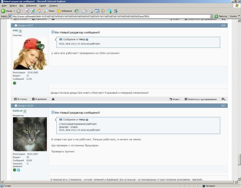 Мегас! Вот скажи мне как художник художнику - ты вообще проверяешь что ставишь? Редактирование не работает. В режиме редактирования кнопки не действуют. Плюс тег видео сам не добавляется. Короче удали перваый пост http://caves.ru/threads/17384-%CD%E...8%ED%F2%E5%F0%ED%E5%F2%E5?p=675917#post675917 и проверь что ты там намудрил нормально. Во всех браузерах!