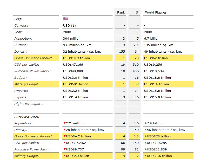 В 2014 году мы опубликовали оговорку по поводу прогноза. За шесть лет сценарий кардинально изменился. Это новое заявление об отказе от ответственности призвано обозначить ситуацию, начиная с 2020 года. Рассматривать Соединенные Штаты и Европейский Союз как отдельные образования больше не имеет смысла. Оба являются западным блоком, продолжают печатать деньги, и их постигнет одна и та же участь.