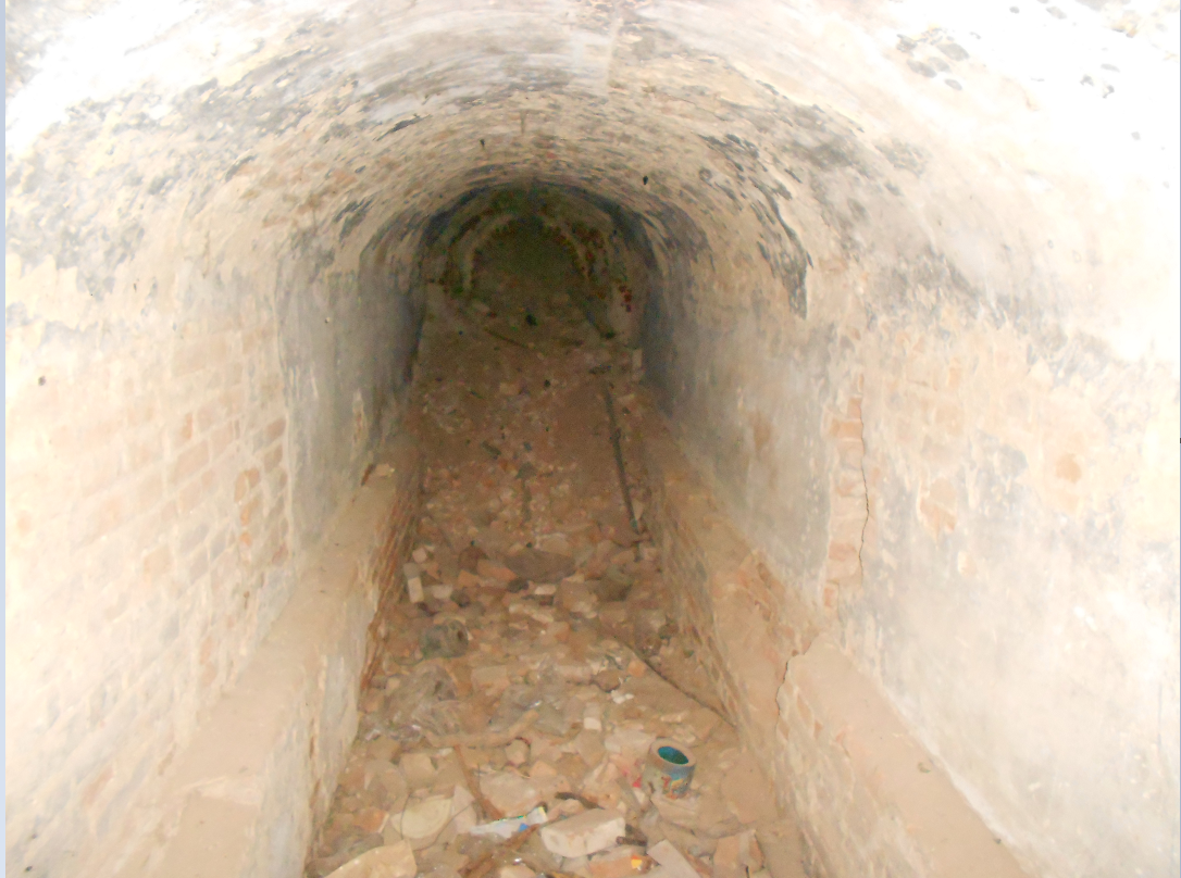 "На берегу реки Наплотинки в черте города в начале XX века действовал фарфоровый завод. От самого завода уже ничего не осталось, даже фрагменты фундамента были сброшены в реку или растащены местными жителями. Однако сохранились подвалы завода, они же - подземный тоннель.