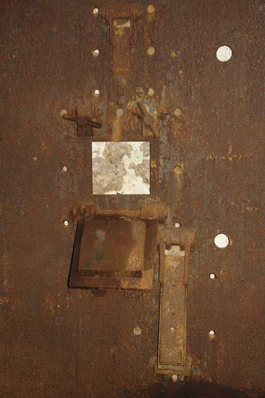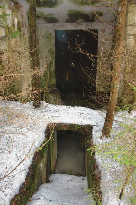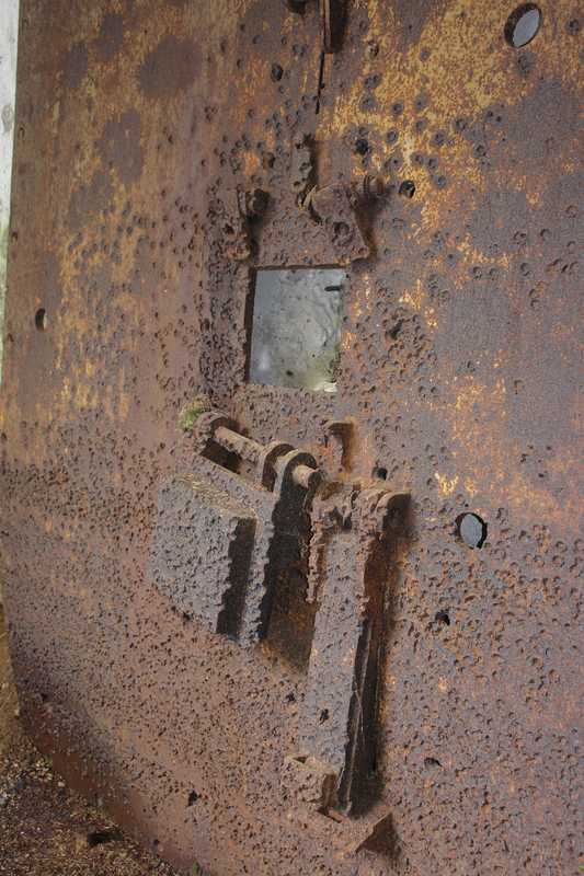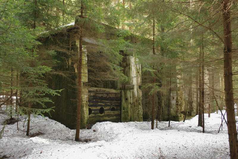И напоследок. Чуть дальше была найдена бетонная же приспособа выполнявшая функции назовем это стенд для отстрела. Четыре отсека открытые с одной стороны в них по здоровому стальному листу толщиной порядка 50 мм и какие то небольшие люки. На листах множество отметок от попадания пуль. Судя по глубине отметок и их размеру 7,62х39