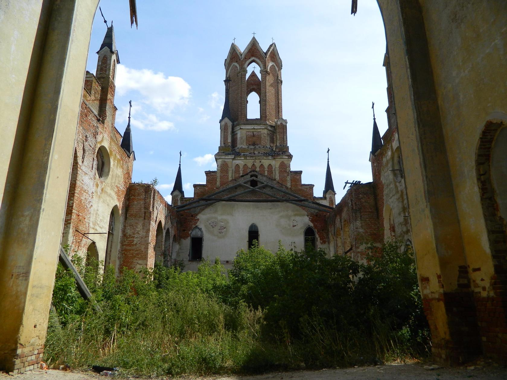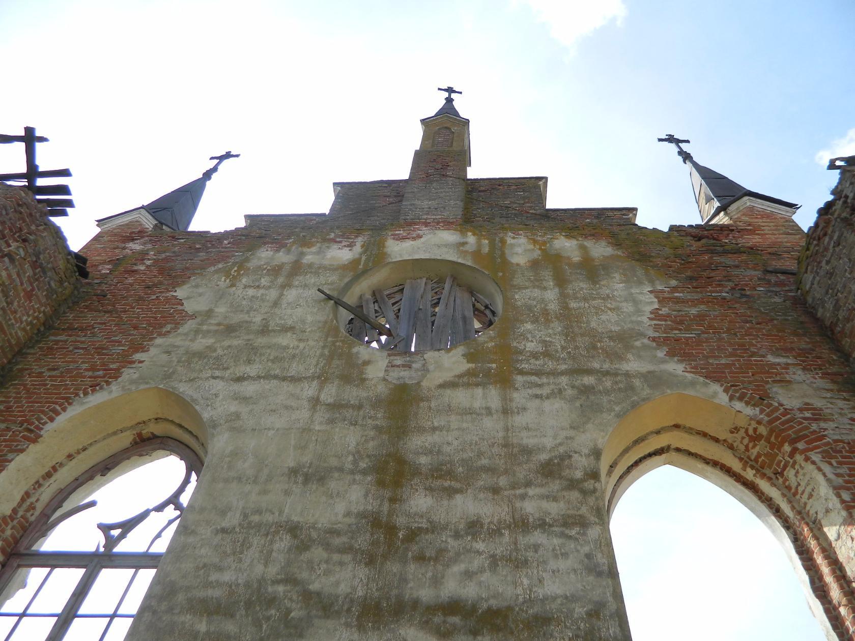 Похоже, что это протестантский храм, коих на руси сравнительно мало. Интересно, как он там появился? Там что, немцы жили? И еще. Последнее фото в подборке - это именно из этого храма? Когда оно сделано? Если это фото именно этой церкви, то, похоже, что это не просто церковь, а кафедральная.
